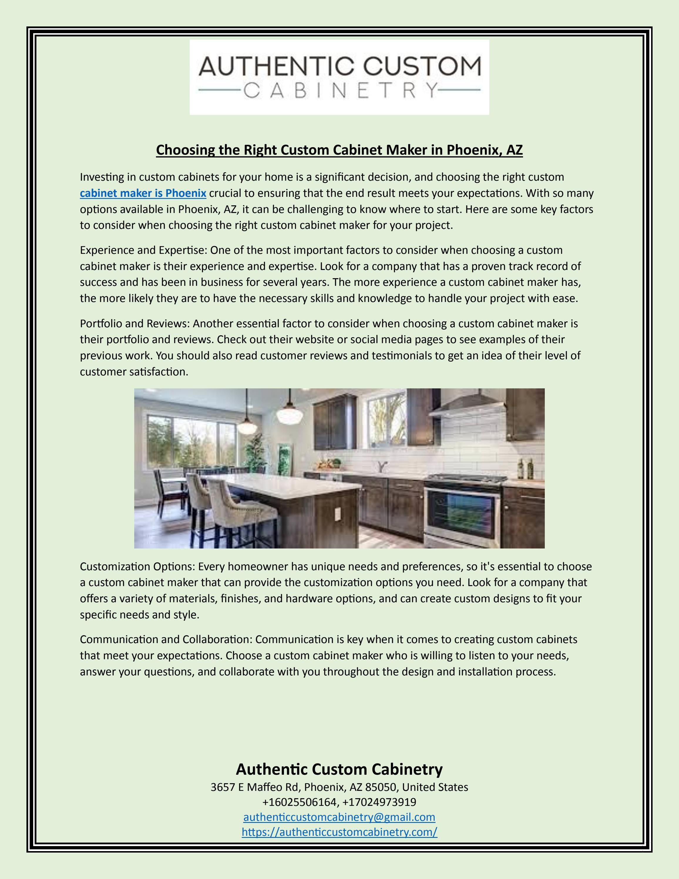 Investing in a custom cabinet designer opens doors to spaces that truly reflect who you are. Whether you’re revamping your kitchen, defining a home office, or optimizing small footprints, taking the next step begins with curiosity and informed choice. Explore resources, compare options thoughtfully, and engage experts who prioritize your timeline, values, and vision. In a market where quality matters, true clarity comes from knowing your needs—and ready access to trusted professionals like Custom Cabinet Maker Phoenix.