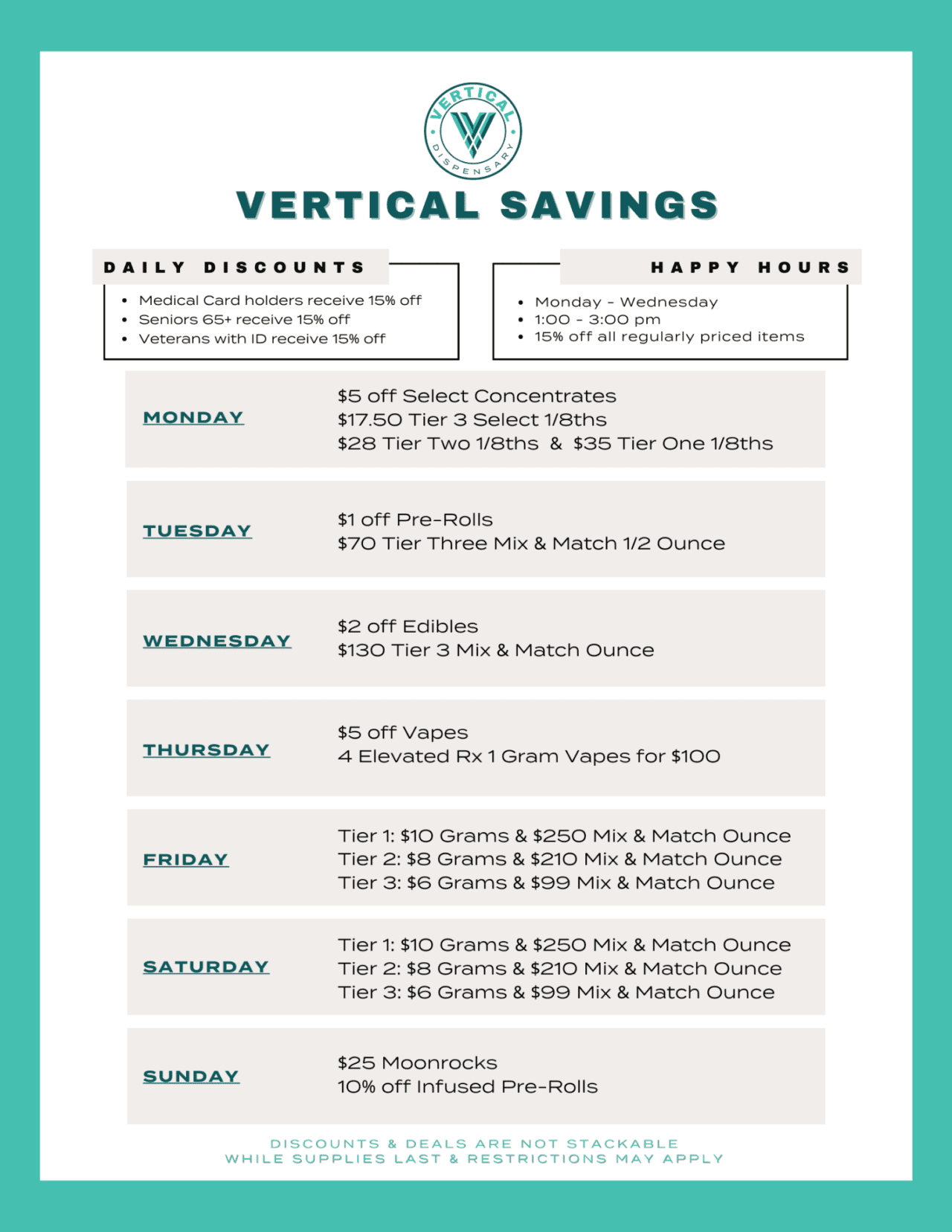 Can I qualify for discounts? Eligibility varies: medical cardholders, first-time visitors, and repeat customers may unlock exclusive pricing. No extraterrestrial or hidden eligibility rules—just clear local guidelines.