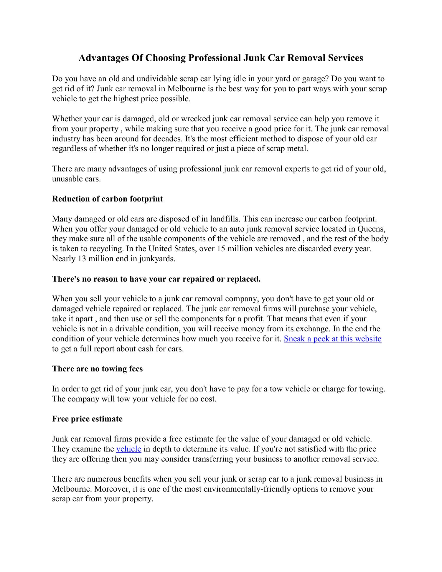 How to Decide If Junk Car Removal Is Right for You Evaluate key factors: Is the vehicle unsafe, unwanted, or pile on property value? Does it cause traffic hazards or emissions issues? Compare removal costs against long-term storage fees and legal liabilities. Reach out to local providers who offer transparent quotes and verified removal processes. This mindful approach builds trust and prevents rushed decisions.